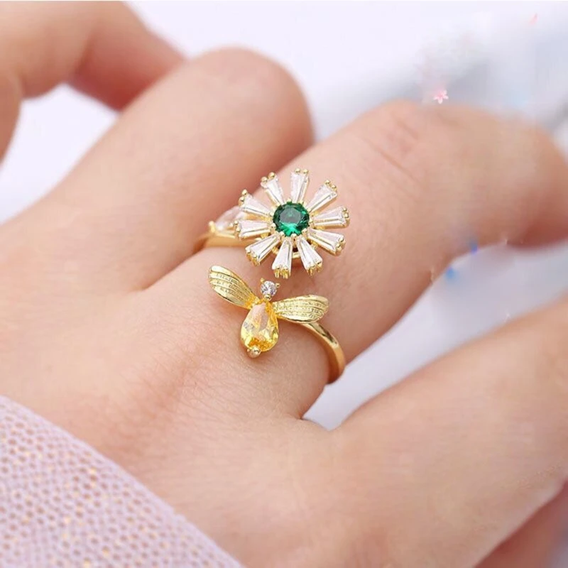Fidget Anxiety Ring Flower Bee Spinning Women Fidget Spinner Stress Relief Rings Drop Shipping Rings Aliexpress