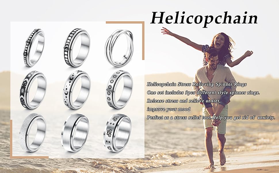 Amazon Com Helicopchain 4 9pcs Stainless Steel Anxiety Rings For Women Men Hypoallergenic Relieving Stress Anxiety Fidget Band Spinner Ring Moon Star Sand Blast Finish Ring Size 5 14 Clothing Shoes Jewelry